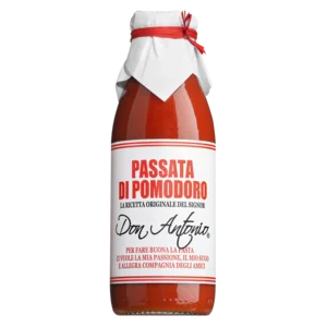 Gute Tomaten-Sughi und handwerkliche, abwechslungsreiche Pastaformate, hergestellt in den Abruzzen, dafür steht Don Antonio. Dekorative Verpackungen wie die Milchflaschen für die Saucen und hübsche Pappschachteln für die Nudeln sind ein Hingucker.