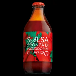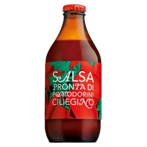 Die kleine sizilianische Kirschtomate ist besonders süß und fruchtig. Für unsere Salsa pronta di ciliegino werden die vollreifen Früchte durch einfaches Einkochen konzentriert, passiert und mit einem Hauch Sellerie, Meersalz, nativem Olivenöl extra und Basilikum eingekocht, wobei der Tomatenanteil 97 % beträgt. In der fertigen Sauce ist nur wenig Zucker, es ist die reine Fruchtsüße dieser Sorte, die vor allem den Geschmack ausmacht. Auf Sizilien isst man sie mit glatten Nudeln und viel geriebenem Pecorino. Für den perfekten Teller Spaghetti al Pomodoro braucht man also nur noch Nudeln, Käse und einen Flaschenöffner.
