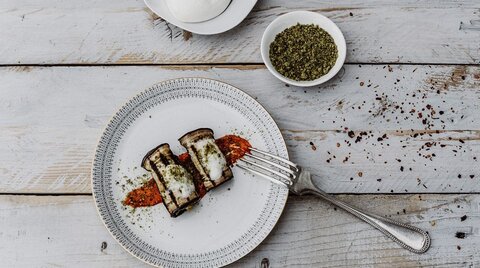 Badrijani - Frittierte Auberginen gefüllt mit gewürzter Walnuss-Knoblauch-Paste