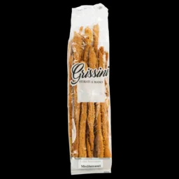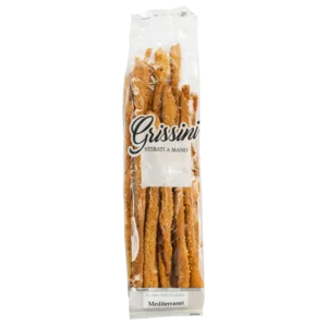 Die mediterranen, langen Grissini von Malafronte bieten eine echte Sinnesreise ans Mittelmeer. Weizenmehl der Sorte "0", getrocknete Tomaten, schwarze Oliven, Oregano und natives Olivenöl extra und Salz sorgen für ein intensiv mediterranes Aroma. Eine wunderbare Ergänzung zu mediterranen Gerichten, Käse oder Aufschnitt. Die Grissini stirato a mano werden einzeln von Hand gezogen.