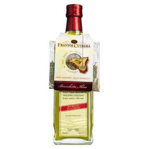 Ungefiltertes, frisches Öl aus den autochthonen sizilianischen Olivensorten Moresca und Biancolilla. Das erste Öl der Saison ist von intensivgrüner Farbe mit mittlerer Fruchtigkeit, Schärfe und Bitternoten, Aromen von grünen Wildkräutern und Artischocke. Seine pikanten und bitteren Noten sind ausgeprägt und kommen besonders aromatisch auf einer Scheibe geröstetem Weißbrot und einer Prise Oregano-Salz zur Geltung, das im Tütchen an jeder Flasche hängt.