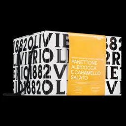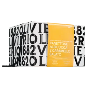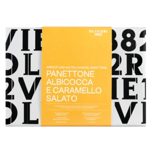 Der Panettone mit kleinen Aprikosenstücken und Splittern von gesalzenem Karamell kommt aus der Werkstatt von Familie Olivieri in Venetien, in der Nähe von Vicenza. Die Herstellung eines dieser Panettone benötigt vier Tage. Das Ergebnis ist ein luftiger, duftender Panettone, der elegant und dezent schmeckt. Das salzige Karamell bleibt am Ende angenehm im Mund.