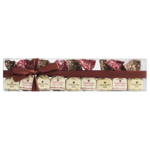 Die Erfinder der Tartufi dolci ist Familie Sebaste in der Nähe von Alba, im Piemont. Sie rösten die piemonteser Haselnüsse IGP und verarbeiten sie auf unannachahmliche Weise zu Trüffelpralinen, inzwischen in zahlreichen Variationen in Verbindung mit Vollmilch-, Zartbitter oder weißer Schokolade oder auch mit Pistazien oder Zitronenzesten. Begonnen haben sie jedoch mit Torrone, dem weißen Nougat, das sie anstelle von Mandeln mit Haselnüssen bestückten. Weiche und harte Variationen sind ein Hochgenuss.