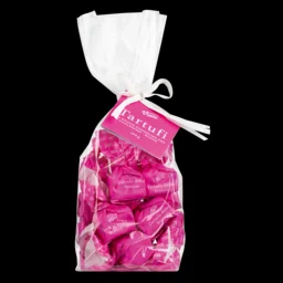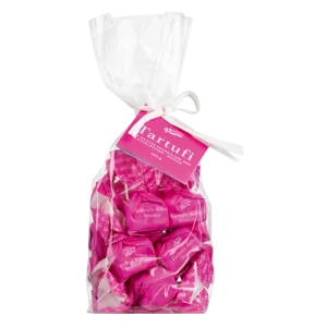 Die Region um Alba ist bekannt für ihre weißen Trüffel. Und so muss es natürlich auch die Tartufi dolci in weißem Gewand geben! Gegensätzlicher könnte die helle Trüffelpraline nicht sein zu unserer Tartufi Urform, dem extranero. Die Tartufi bianchi sind nicht nur ein Kontrast in der Farbe, auch im Geschmack sind sie deutlich milder als die klassisch dunklen Schokoladentrüffel. 14 mal süßlich-nussiger Genuss aus Kakaobutter, natürlichem Vanillearoma und natürlich Piemonteser Haselnüssen IGP in fröhlich pinkem Einwickelpapier im durchsichtigen Geschenkbeutel. Eine schöne Alternative zu unseren dunklen Tartufi dolci Pralinen.